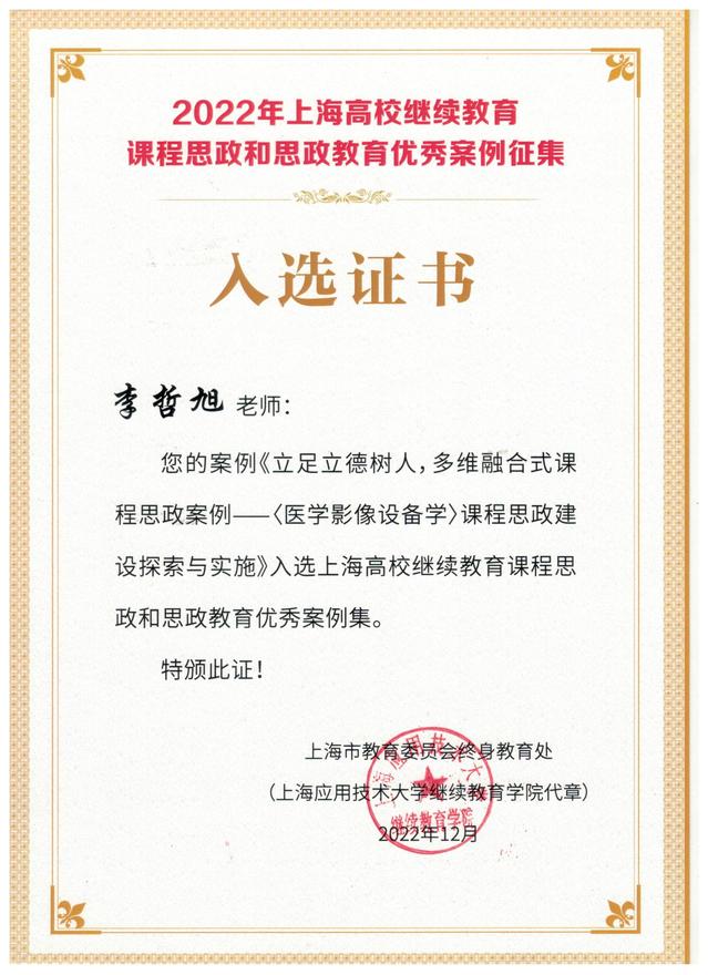 为了贯彻落实党的二十大精神,探索新时期继续教育学生思想政治教育工作的特点和规律,上海市教育委员会于去年下半年组织开展上海高校继续教育课程思政和思政教育优秀案例征集活动,我校李哲旭副教授的继续教育课程思政案例成功入选。