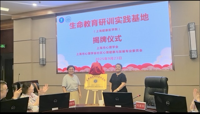 会上,上海健康医学院继续教育学院院长兼老年大学校长张美蓉,与专委会刘素珍主任共同为“生命教育研训实践基地”揭牌。这一基地的设立,标志着我校在生命教育领域实现了医教协同与产学研结合的又一次重大跨越。依托医学高校的深厚底蕴与一流的教育资源,基地将承担起人才培养、学术研究和社会服务三大功能,推动生命教育理念走进课堂、走进社区、走进大众,真正服务于“健康中国”战略的落地与实施。