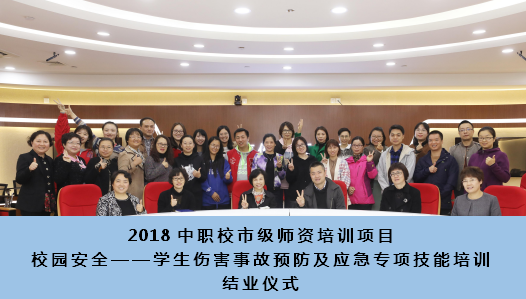 11月10日上午,由继续教育学院牵头负责2018年中职校市级师资培训基地(简称:基地)项目“校园安全——学生伤害事故预防及应急专项技能培训”圆满完成。基地项目负责人、继续教育学院院长徐小萍、浦东新区医疗急救中心副主任张春芳、上海健康医学院附属卫校金山分校校长周芬华、浦东分校校长张煜、崇明分校校长李盛萍和宝山分校校长滕莉参加结业仪式并讲话,仪式由继续教育学院非学历教育科科长姚谷芳主持。