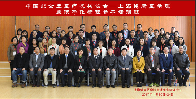 11月20日-24日,上海健康医学院血液净化培训中心完成第三期培训——血液净化管理骨干培训班。来自全国12个省市的医院院长、肾病中心主任、护士长和独立血透机构CEO等共41人参加培训。