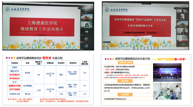 学校高等学历继续教育目前共开设护理学等七个专升本专业。为进一步加强学校高等学历继续教育招生宣传力度,提升继续教育社会服务能级,继续教育学院深挖资源、创新探索,分阶段组织了面向应届毕业生、高职院校、行业协会、企业等多场线上招生宣传推介会,累计参会百余人、院校9所、行业协会及企业9家。